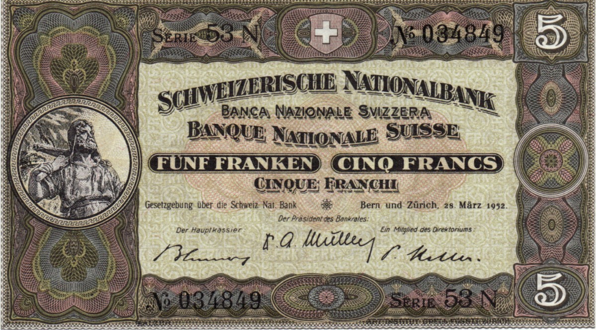 RS: 5 im Oval, SCHWEIZERISCHE NATIONALBANK (3-sprachig),