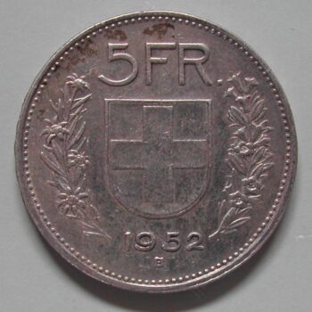 RS: 5 FR. / Wappen zwischen Alpenrosen und Edelweiss / 1952 / B