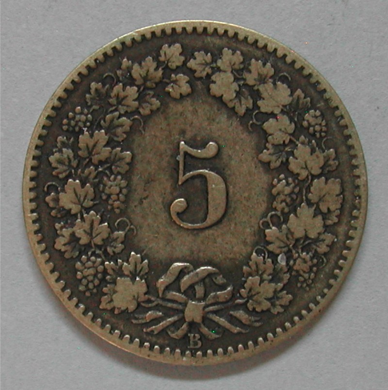 RS: 5 im Feld in Weinrebenkranz, unter der Schleife: B (Bern)