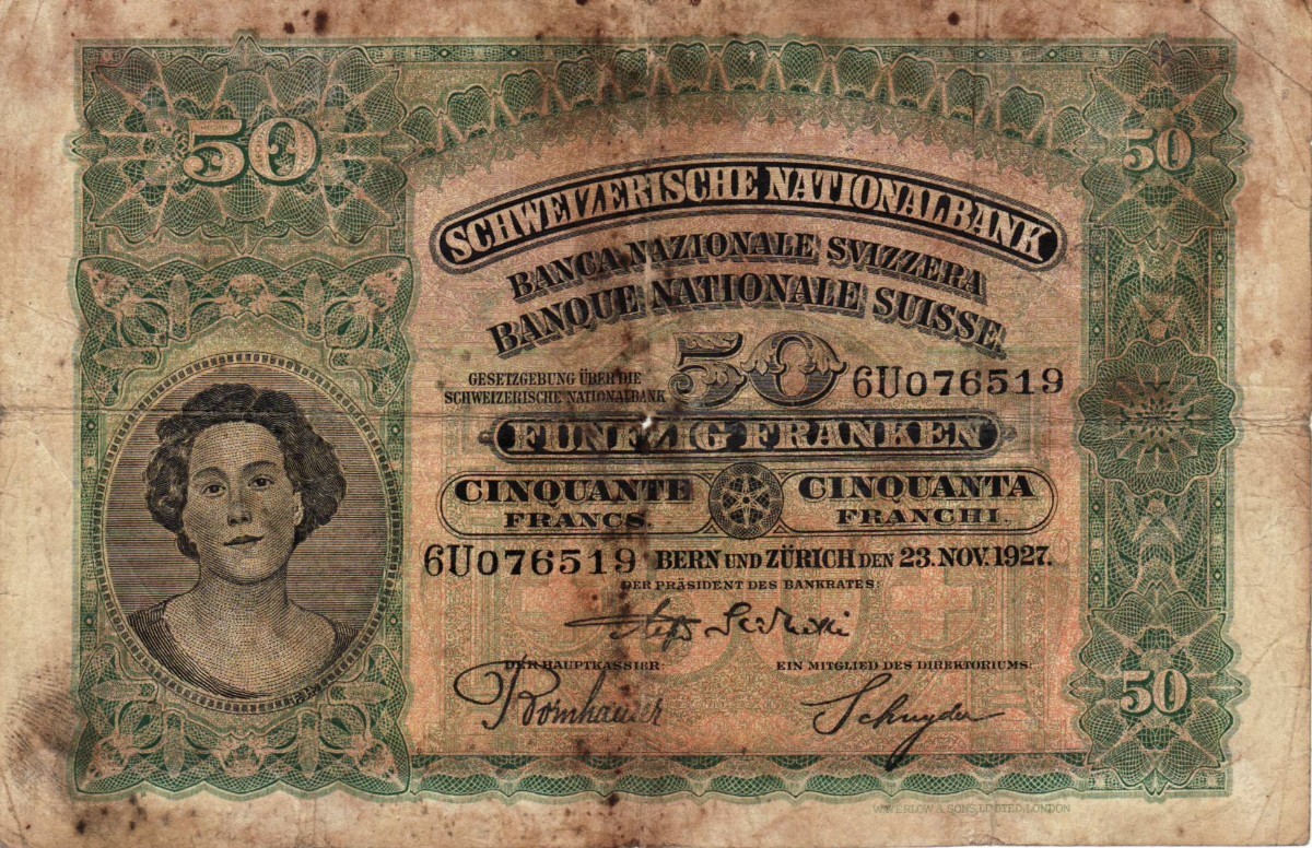 AS: links in ovalem Medaillon Frauenbildnis, 3 sprachige Texte und Wertangaben, Datum, Unterschriften