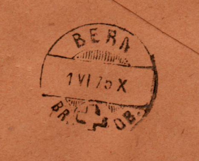 RS: Ankunfts-Brücken-⨀ BERN / 1 VI 75 X / BR. ✚ DB.