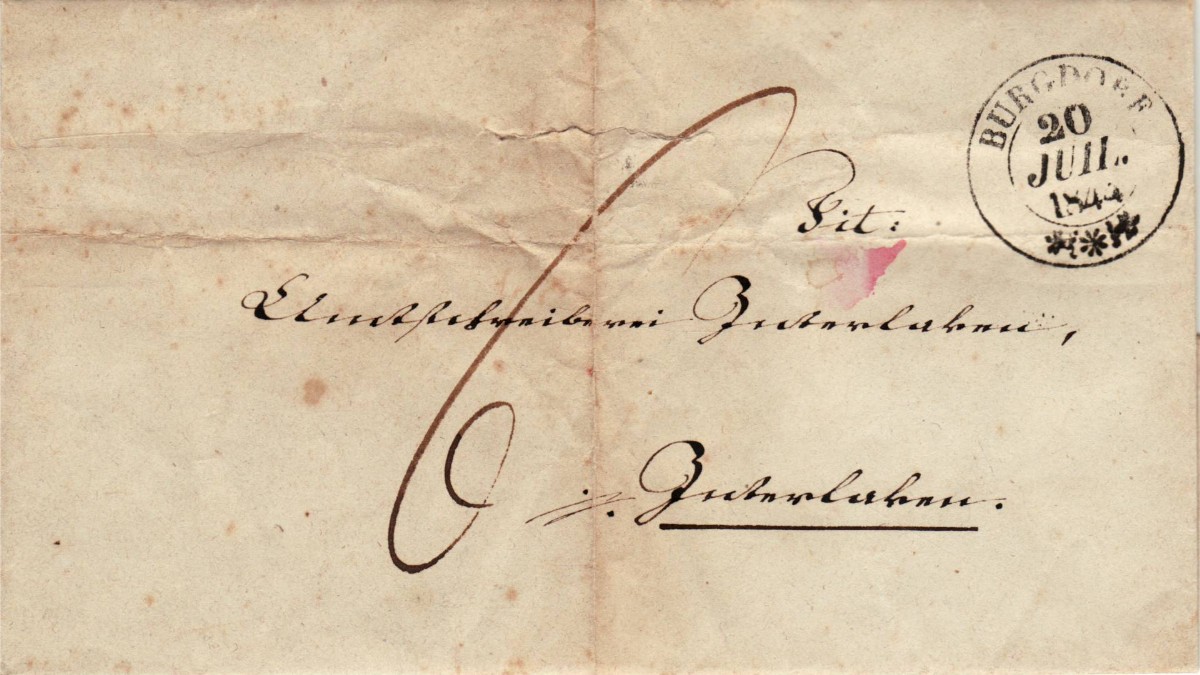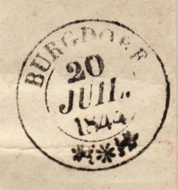 AS: Grosser Zweikreis-⨀ BURGDORF ❆❆❆, im Innenkreis: 20 / JUIL / 1844