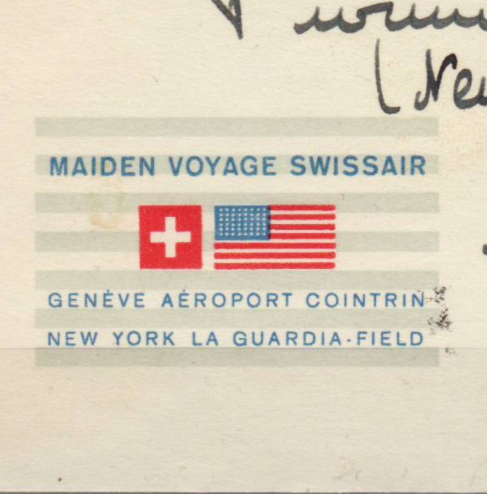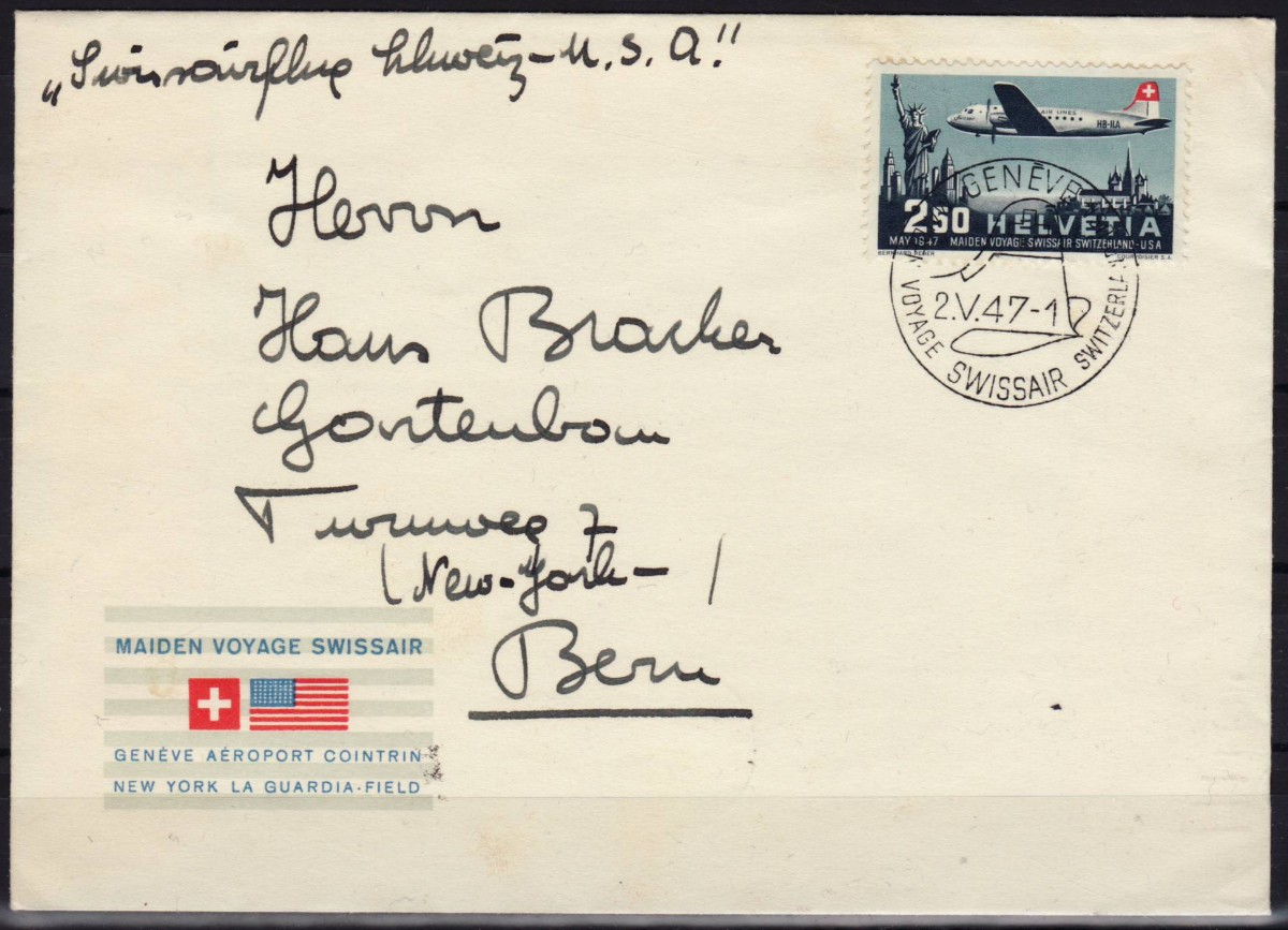 AS: MAIDEN VOYAGE SWISSAIR, Marke 2.50 MAY 47 MAIDEN VOYAGE SWISSAIR SWITZERLAND-USA