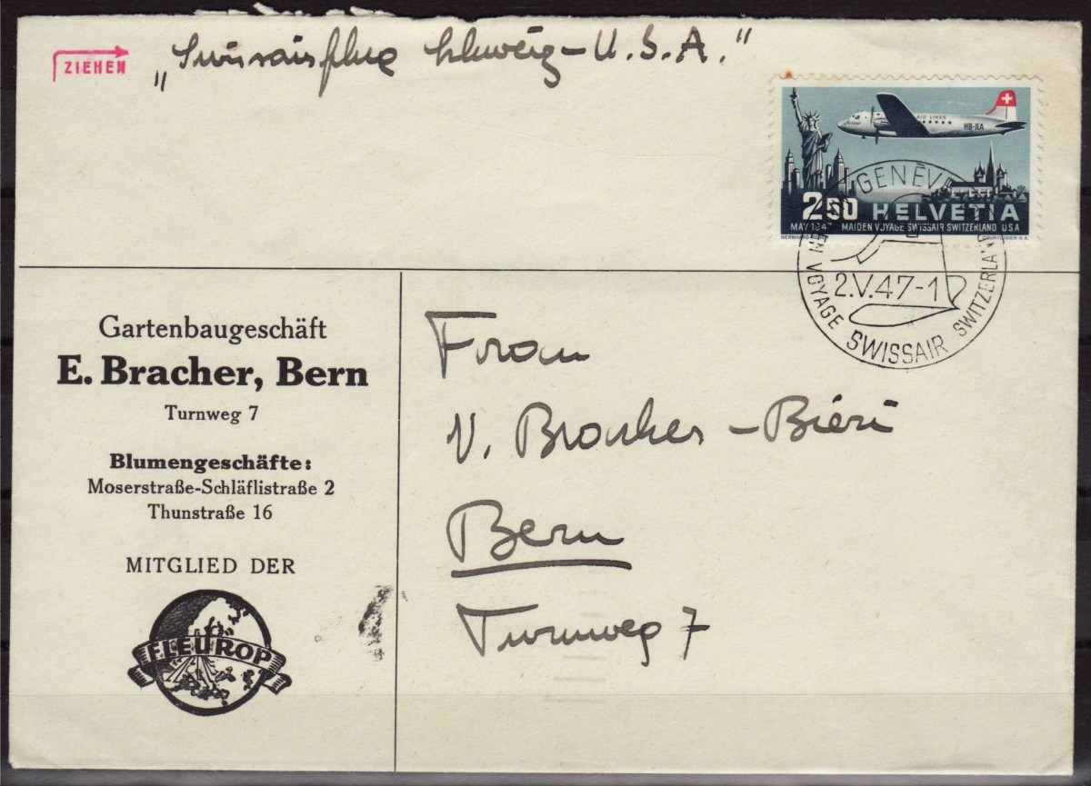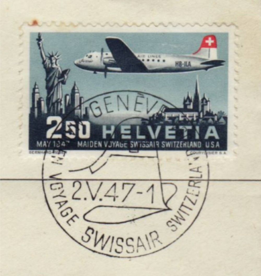 AS: Marke 2.50 MAY 47 MAIDEN VOYAGE SWISSAIR SWITZERLAND-USA