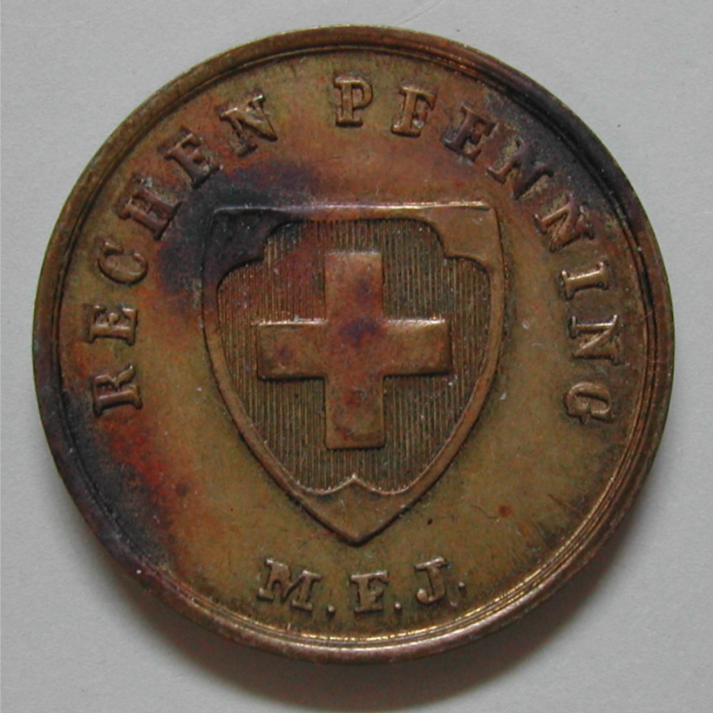 AS: RECHEN PFENNING M.F.J. um Schweizer Wappen