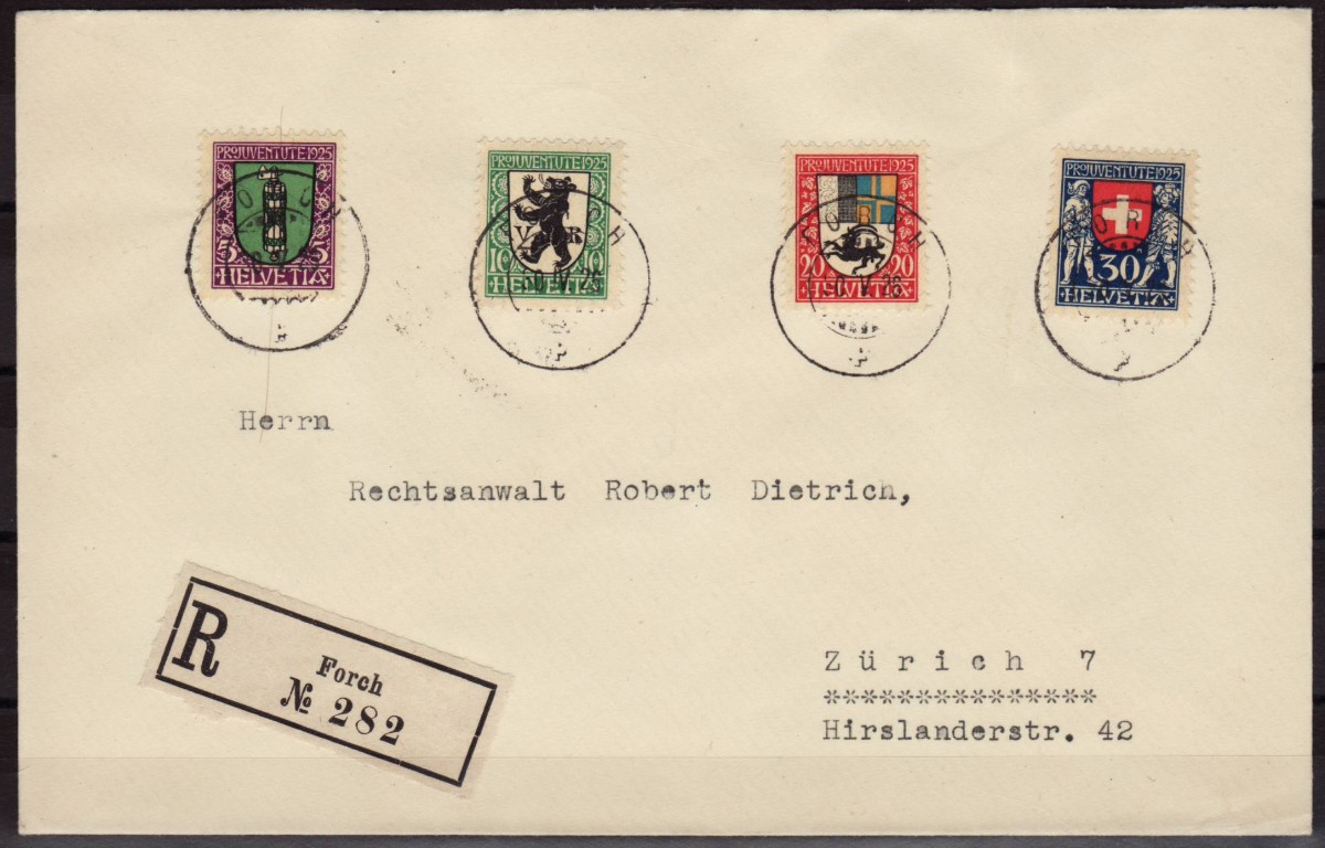AS: Serie PJ 1925 einzel ⨀ sauber, R Zettel R FORCH N° 282 nach Zürich 7