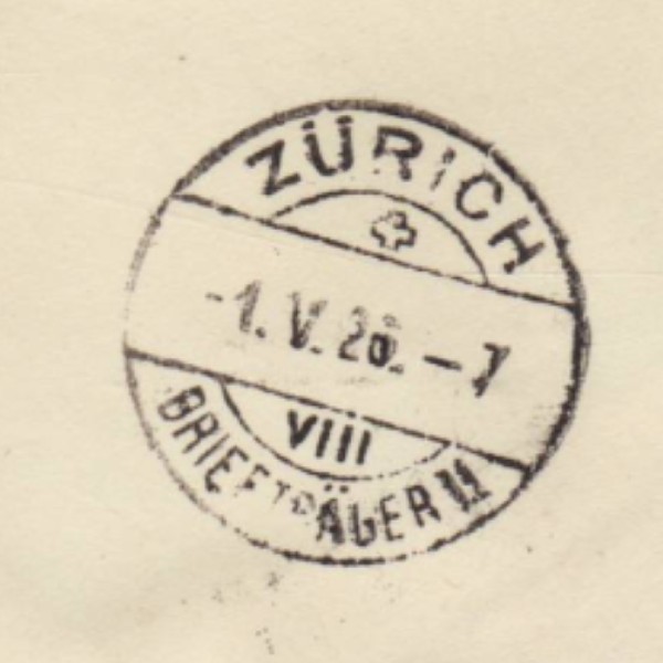 RS: Ankunfts-⨀: ZÜRICH – BRIEFTRÄGER II / ✚ / VIII / -1.V.26.-7