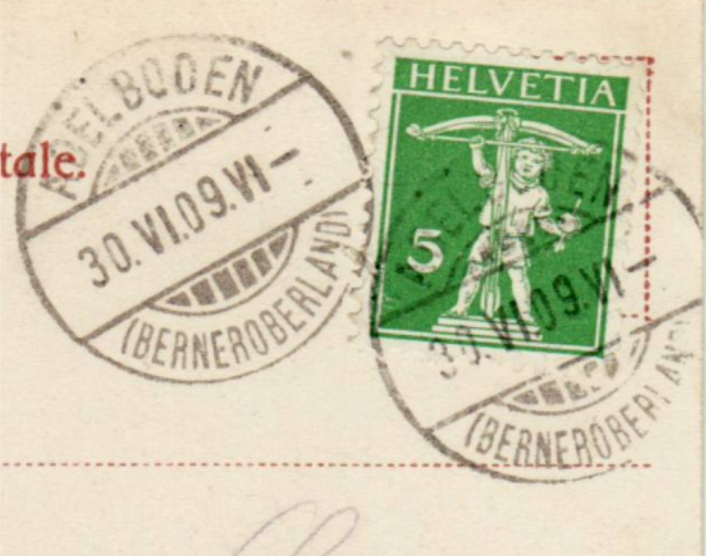 RS: Marke Ziffer 5 Cts grün, Z Nr 82, ⨀ ADELBODEN (BERNER OBERLAND) / 30.VI.09.VI-