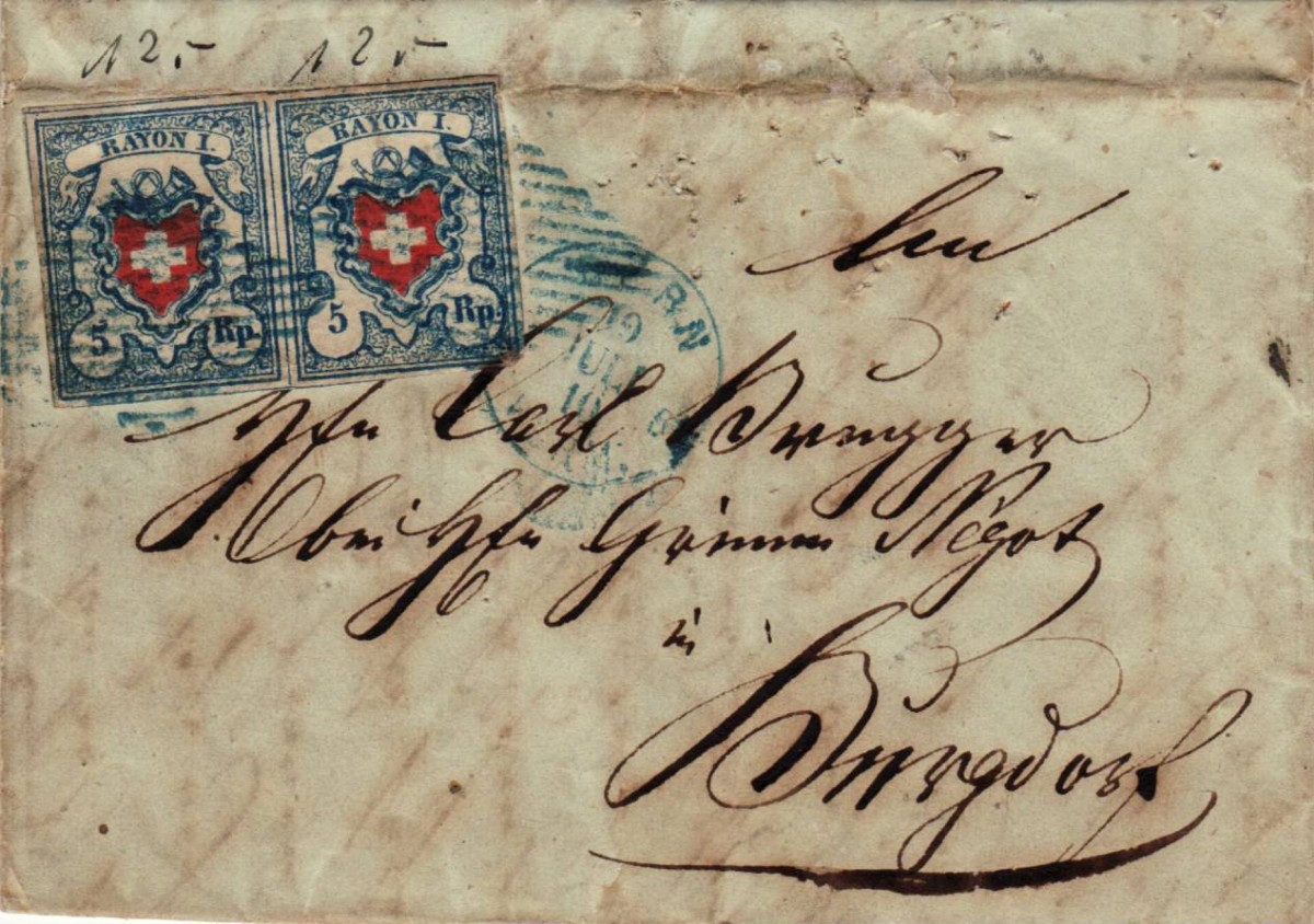 Seltene Frankatur im Paar, Z = 2’800.00 auf Brief, Gebrauchsspuren vom falten und öffnen