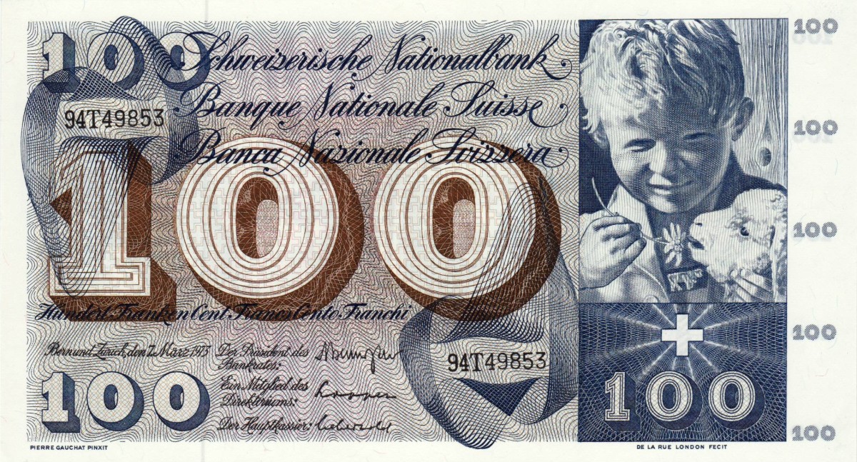 CH SNB, 100 FRANKEN 7. März 1973, 94T, 49853, unz
