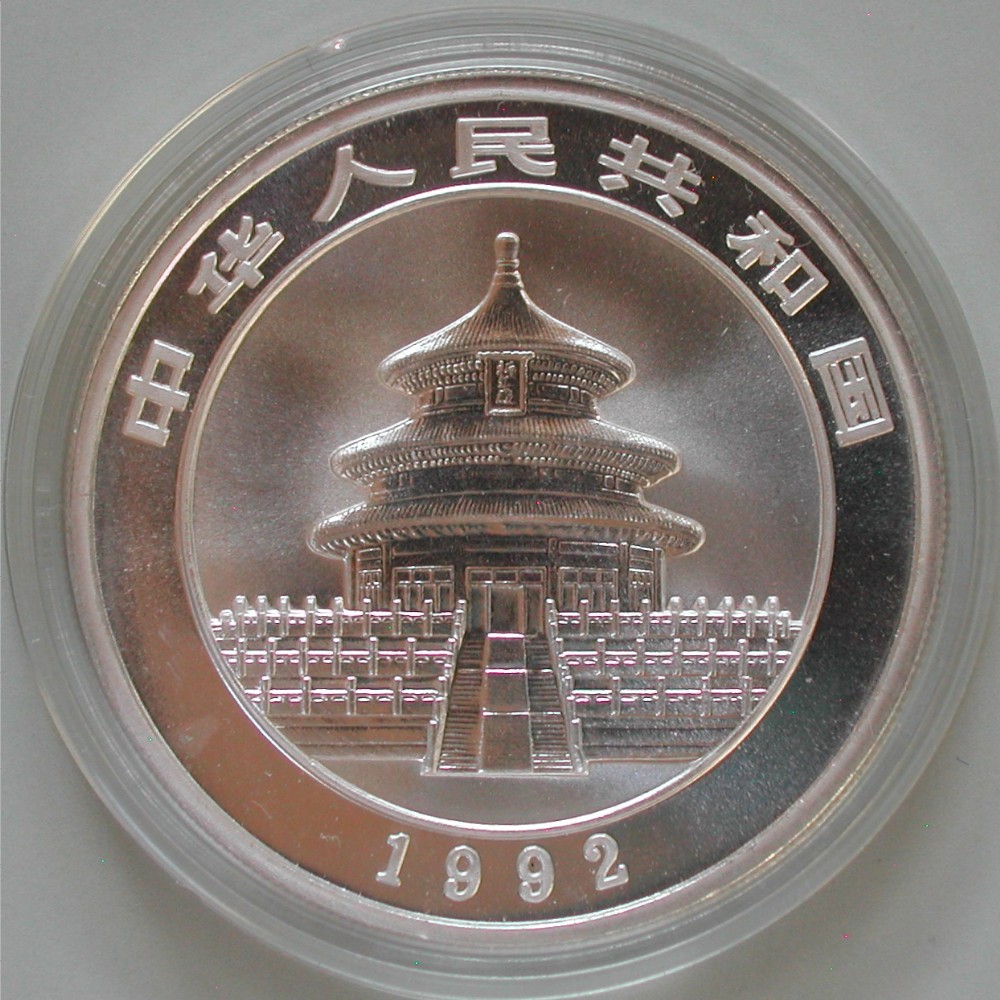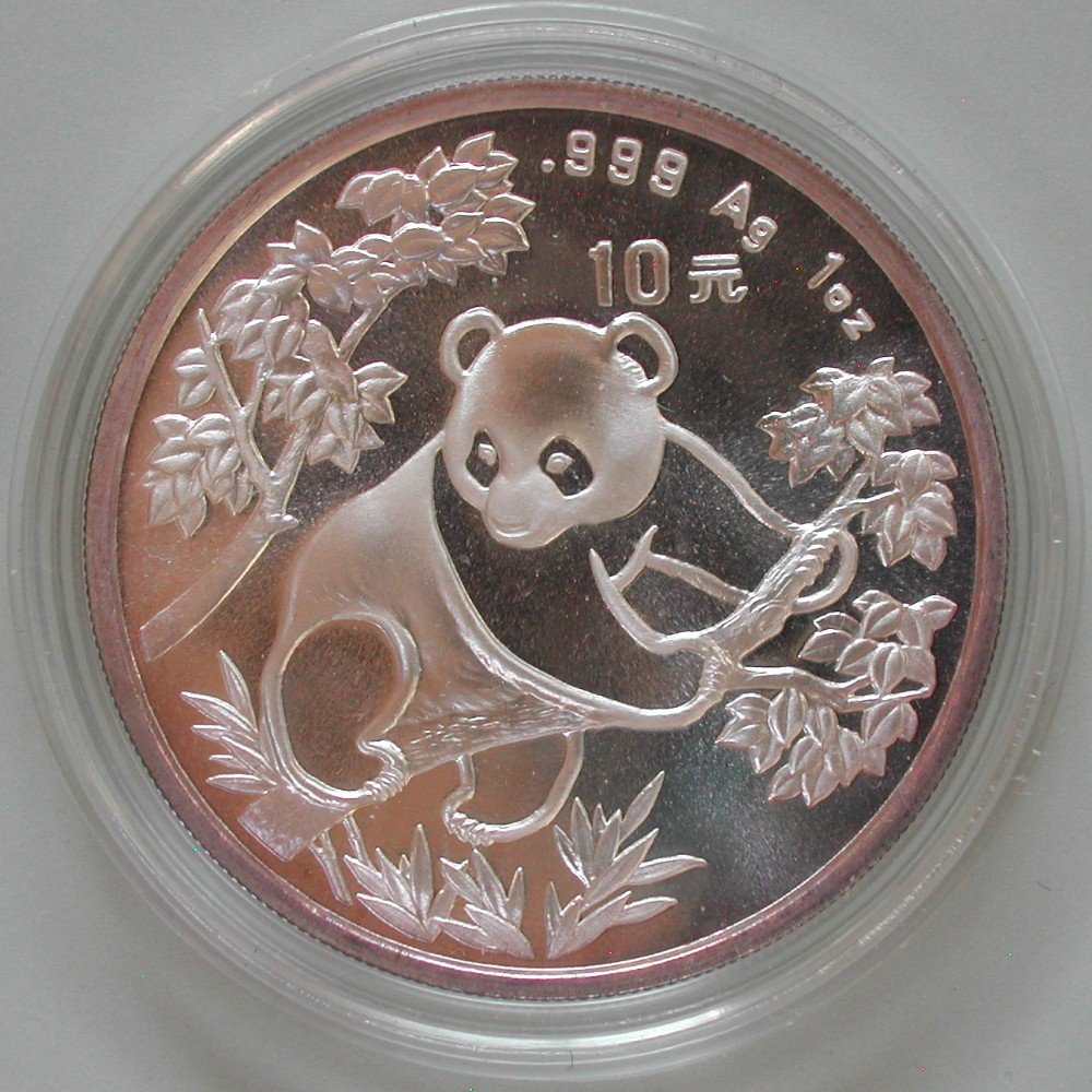 AS: Panda nach rechts, auf einem Baumast sich festhaltend, CHIN. Schrift, 999, 1 OZ, 10 (Yuan)