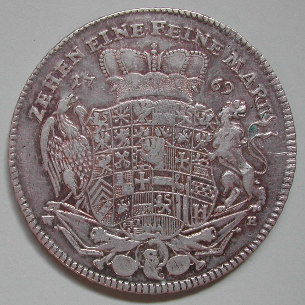 RS: ZEHEN RINE FEINE MARK, gekröntes, vielfeldiges Wappen links Adler, rechts Löwe, unten in Kartusche: S