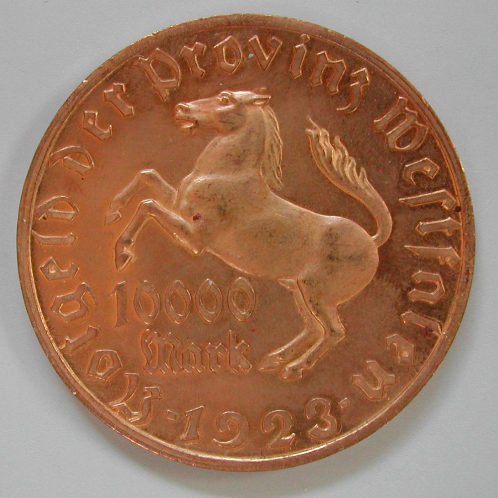 RS: Notgeld der Provinz Westfalen • 1923 •, Pferd nach links steigend, darunter links: 10000 / Mark