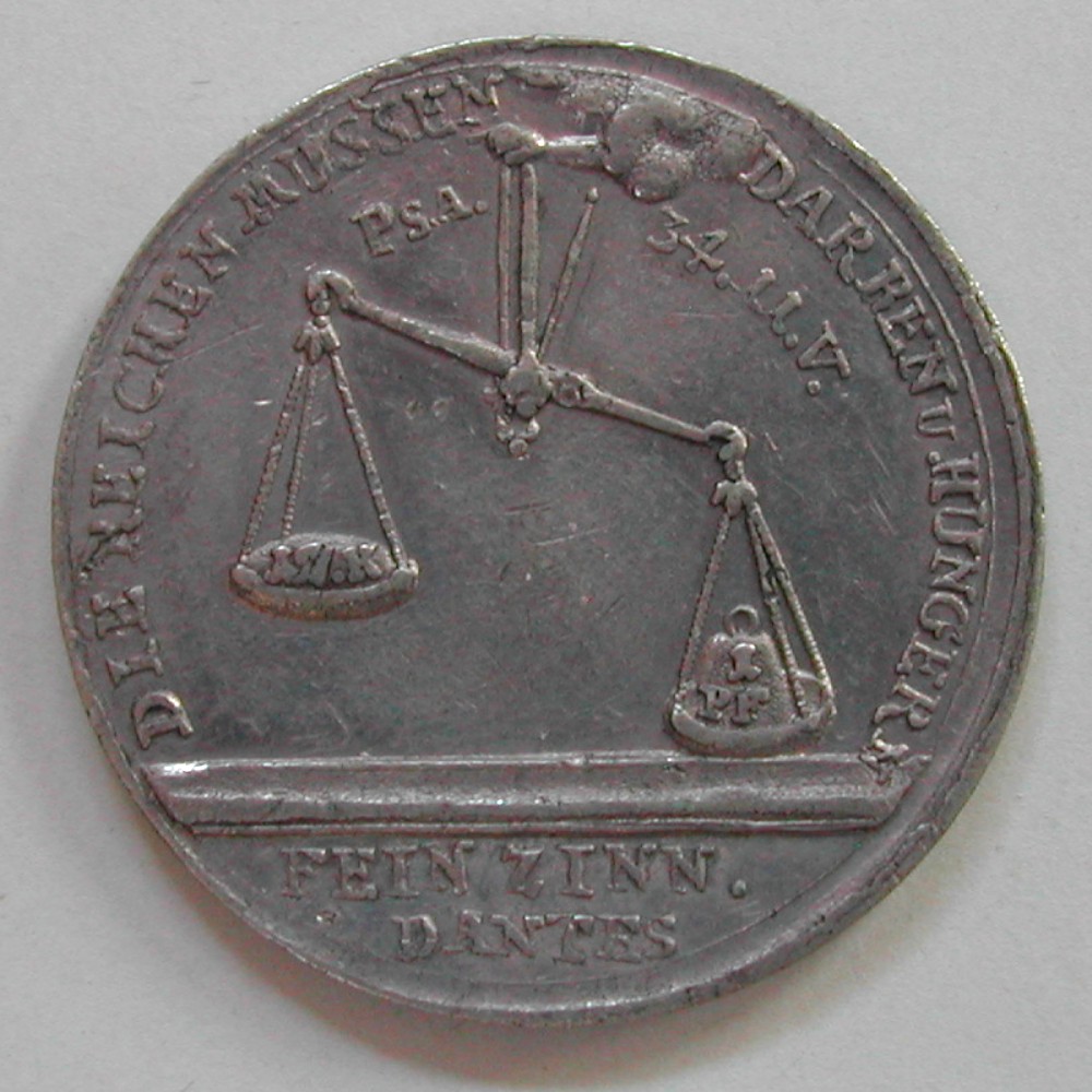 D, ZINNMEDAILLE auf den Hunger 1772, Sn ca 10.1 gr., d=33mm, vz