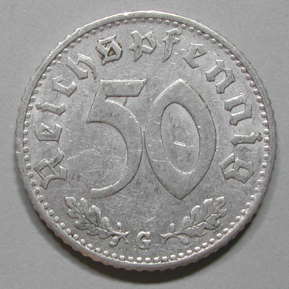 RS: Reichspfennig / 50, unten: G zwischen Eichenblättern