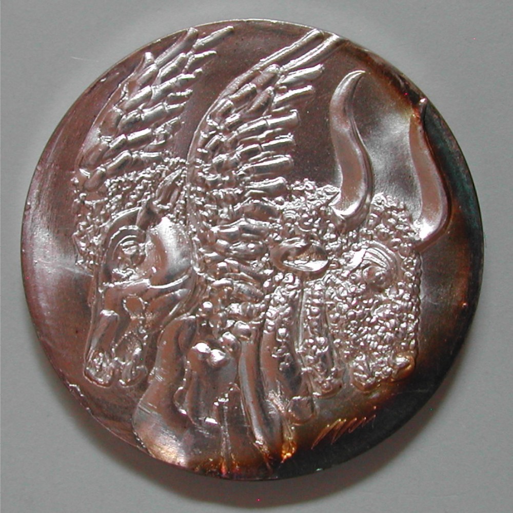 AS: 2 Tierköpfe, DINOSAURIER mit Flügeln und UR, sig: Erni