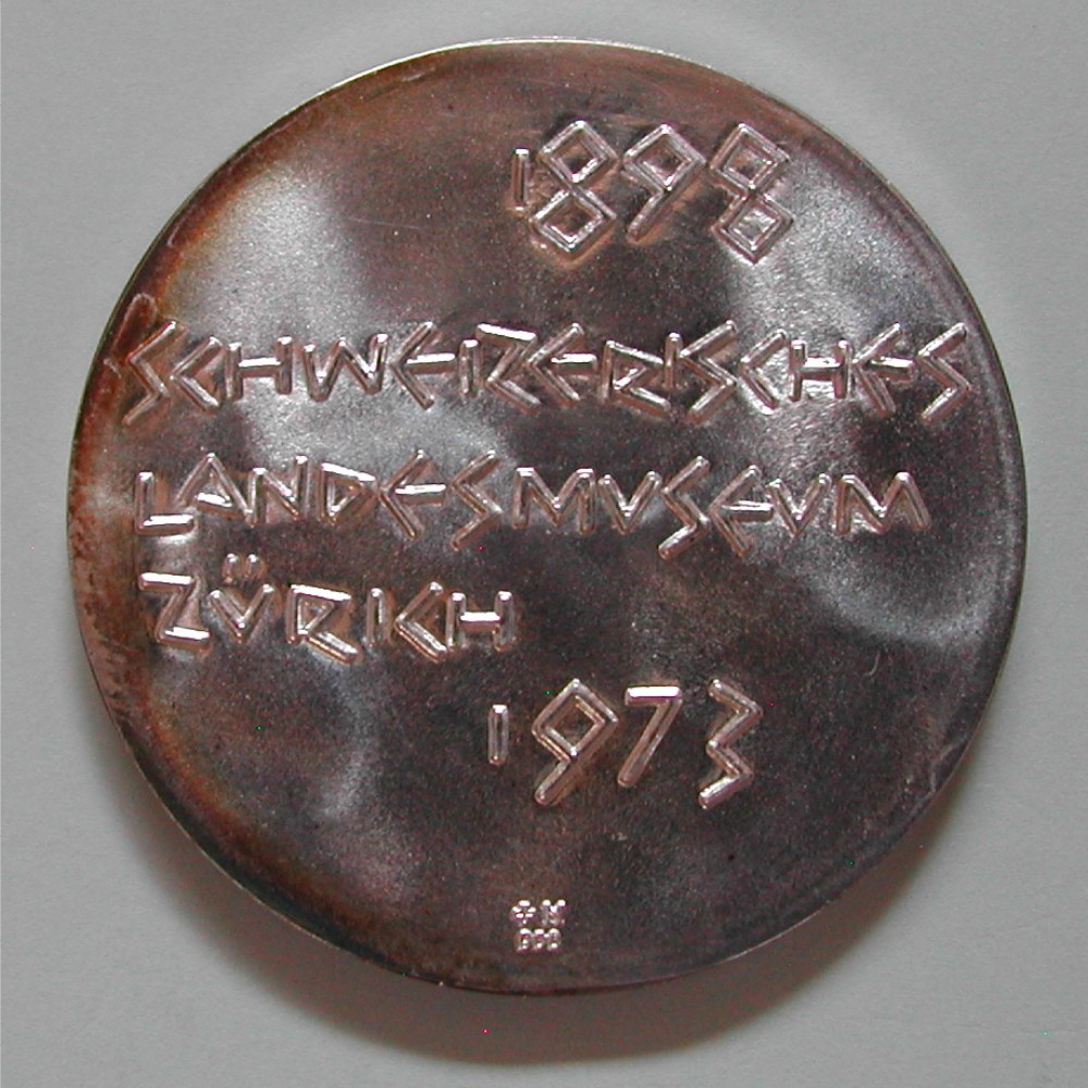 RS: 1898 / SCHWEIZERISCHES / LANDESMUSEUM / ZÜRICH / 1973, sig: ✚M / 900