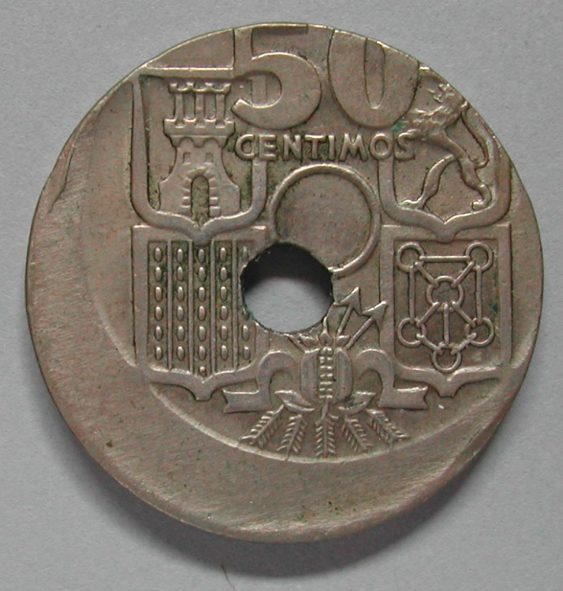 RS: 50 / CENTIMOS über mehrfeldigem Wappen
