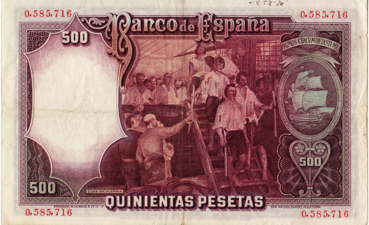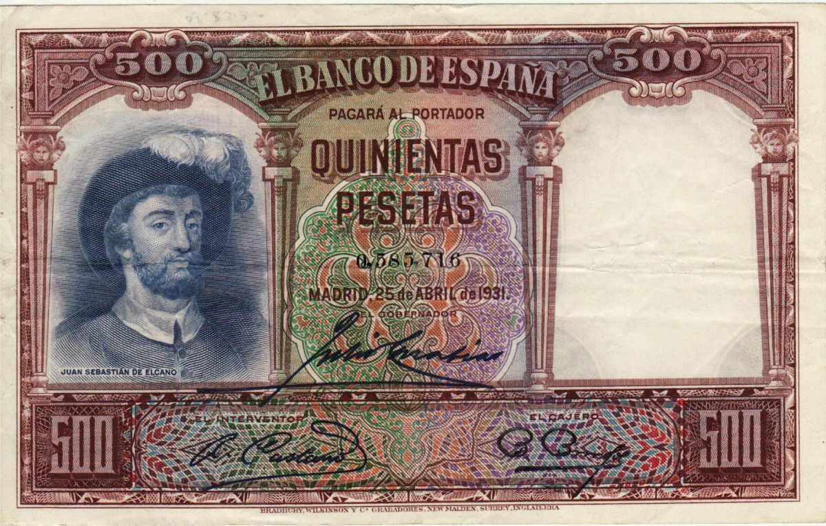 AS: EL BANCO DE ESPAÑa, QUINIENTAS / PESETAS, MADRID 25 de ABRIL de 1931, JUAN SEBASTIAN DE ELCANO