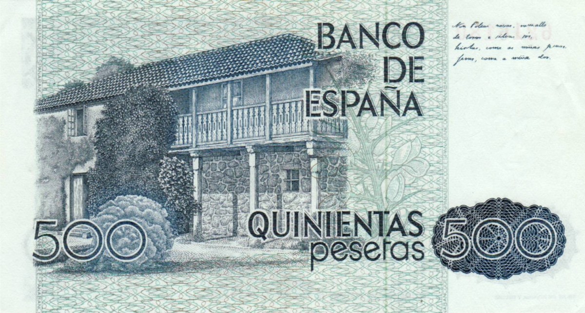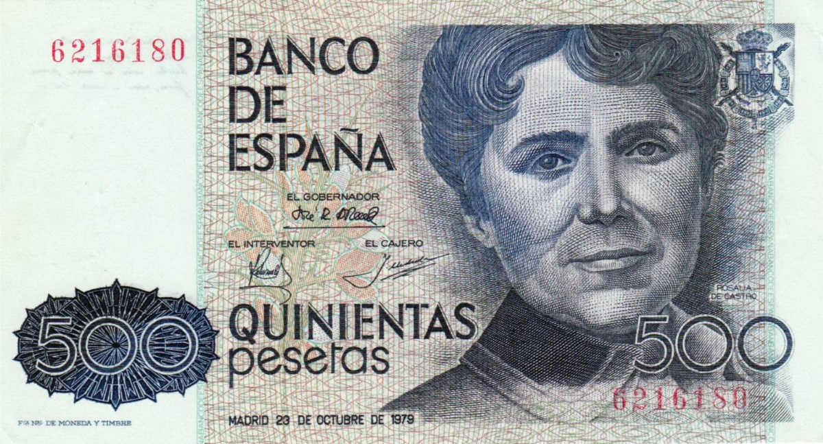 AS: BANCO DE ESPAÑA, 500 PESETAS, rote Nummern: 6216180, Portrait rechts: ROSALIA DE CASTRO