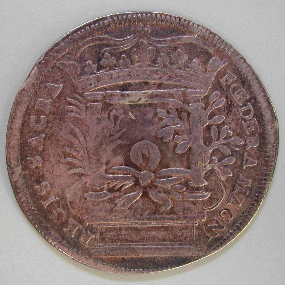 RS: REGIS SACRA ♛ FŒDERA MAGNI, Krone auf Altar zwischen Lorbeer-und Palmzweigen, Schleifen