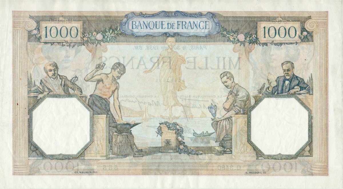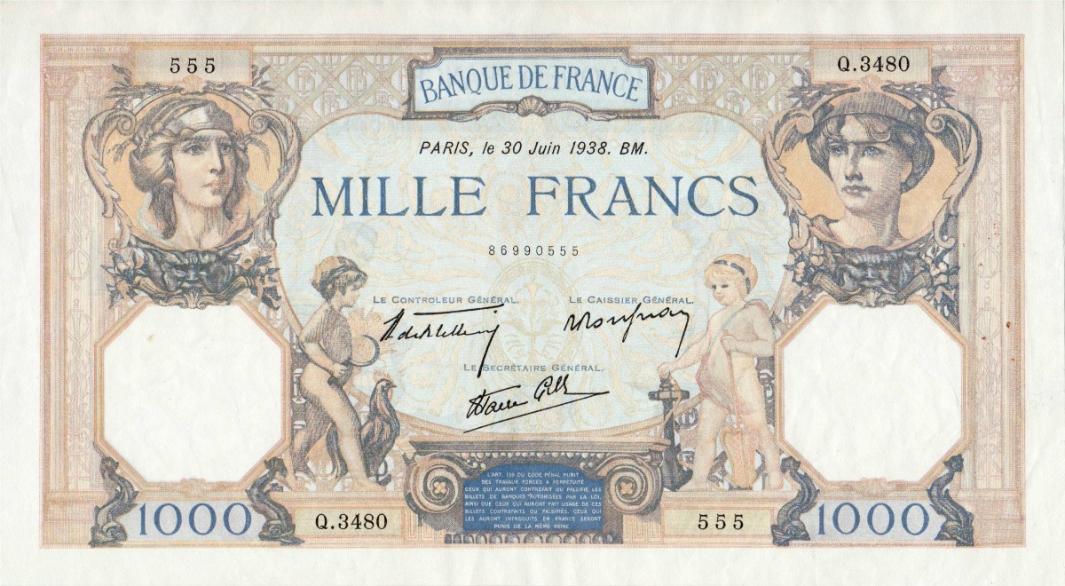 AS: 555 BANQUE DE FRANCE Q.3480, MILLE FRANCS, links und rechts allegorische Figuren