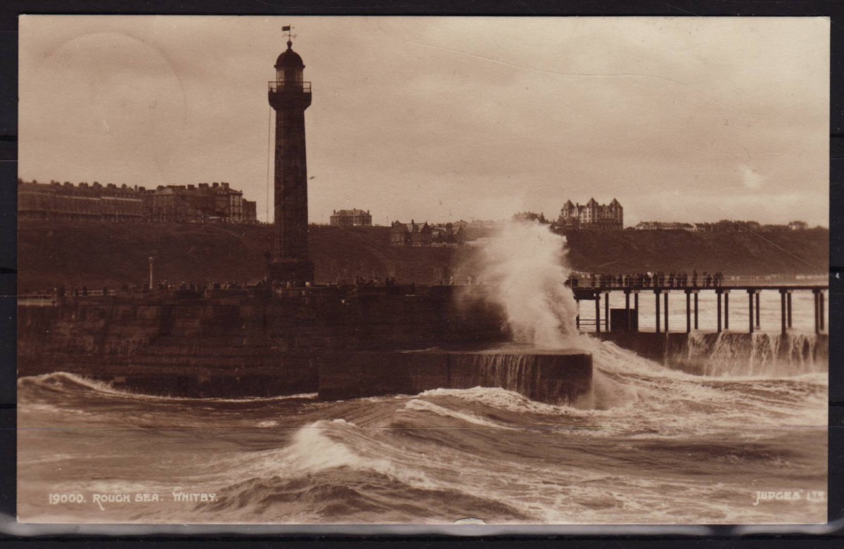 AS: Leuchtturm, Schloss und Menschen auf Steg die Wellen betrachtend