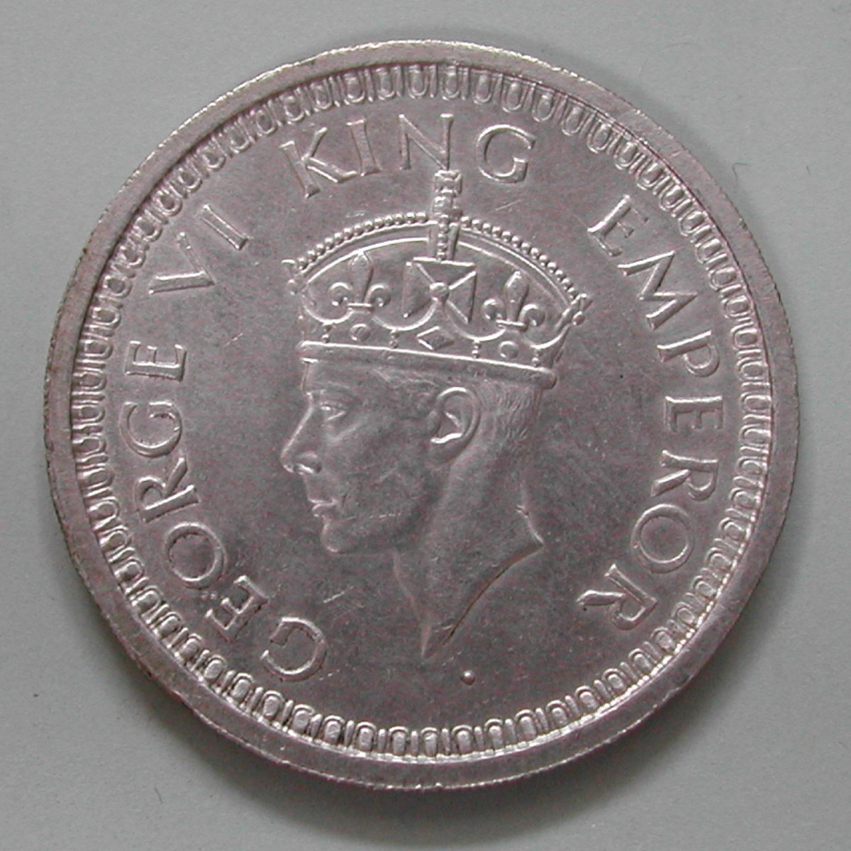 RS: In reichem Blumenkranz und Linienkreis: ONE / RUPEE / INDIA / 1944