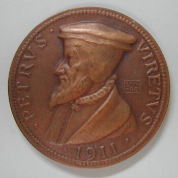 AS: PETRVS – VIRETVS, Büste des Reformators nach links, unten 1911, sig in Rechteck: HANS/FREI