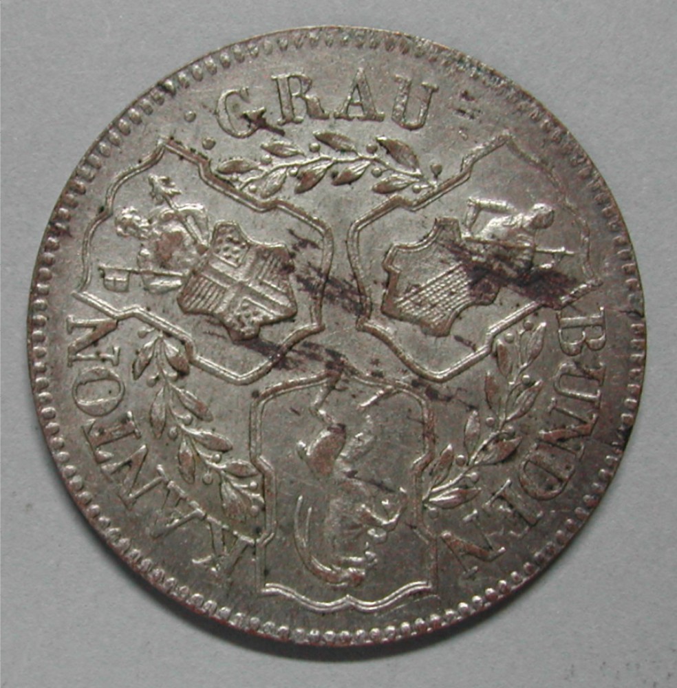 AS: KANTON – :GRAU – BUNDEN, 3 Wappen, dazwischen Lorbeerzweige