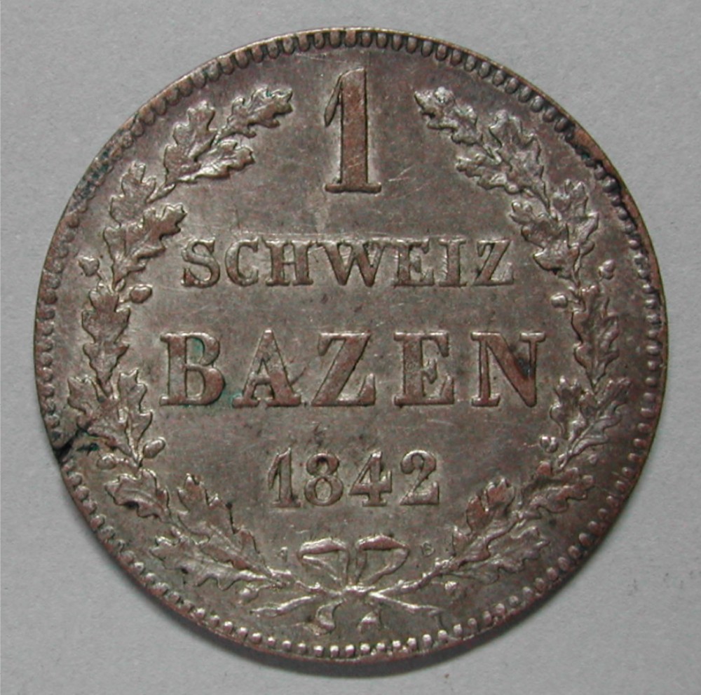 RS: 1 / SCHWEIZ / BAZEN / 1842 in Eichenlaubkranz, Schleife zwischen A – B