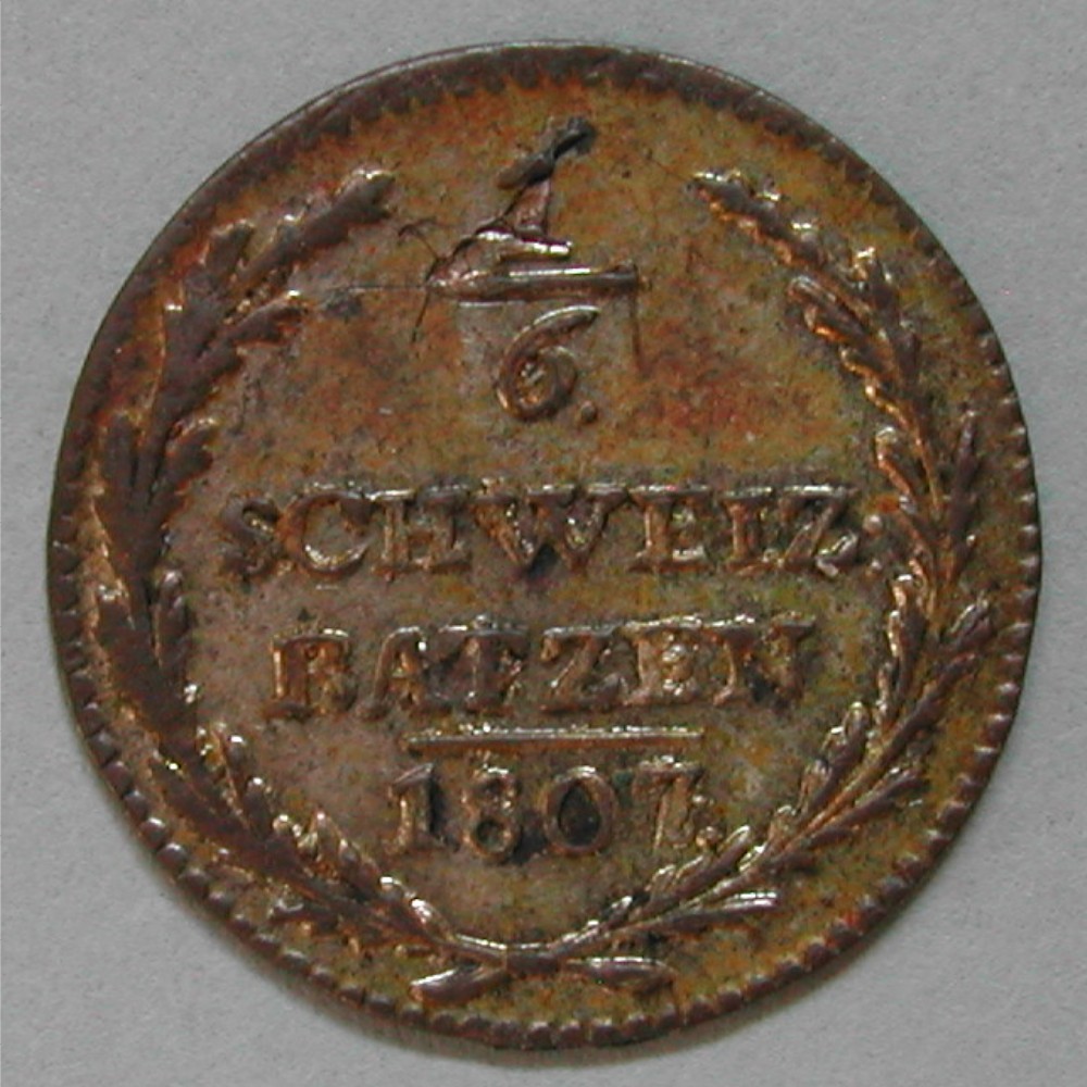 RS: 1/6 / SCHWEIZ: / BATZEN / —— / 1807 im Kranz
