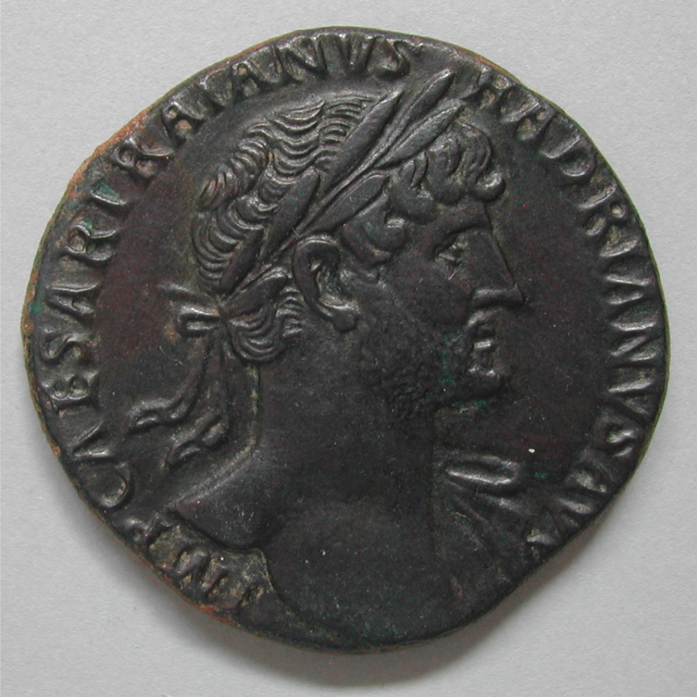 AS: IMP CAESAR TRAIANVS – HADRIANVS AVG, belorbeerte Büste nach rechts