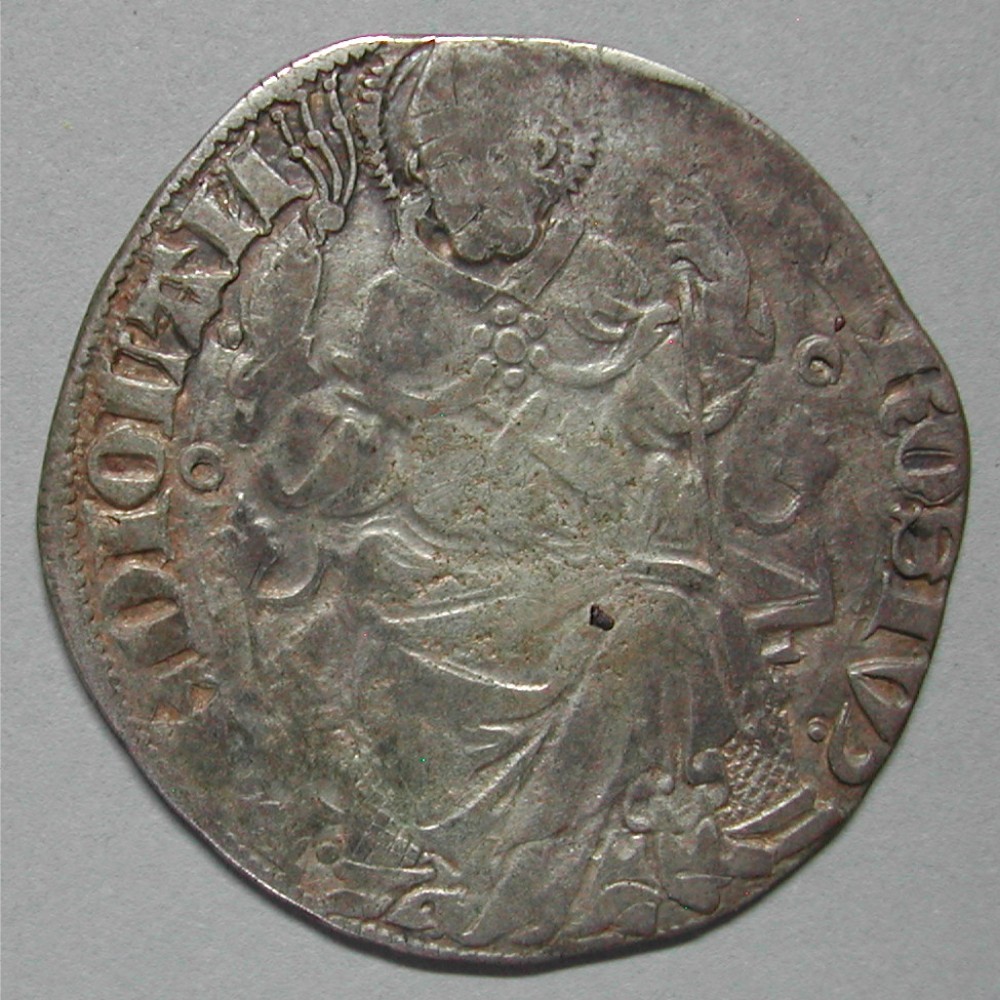RS: AMBROSIV’. MEDIOLAN, Heiliger frontal sitzend mit Geissel und Stab