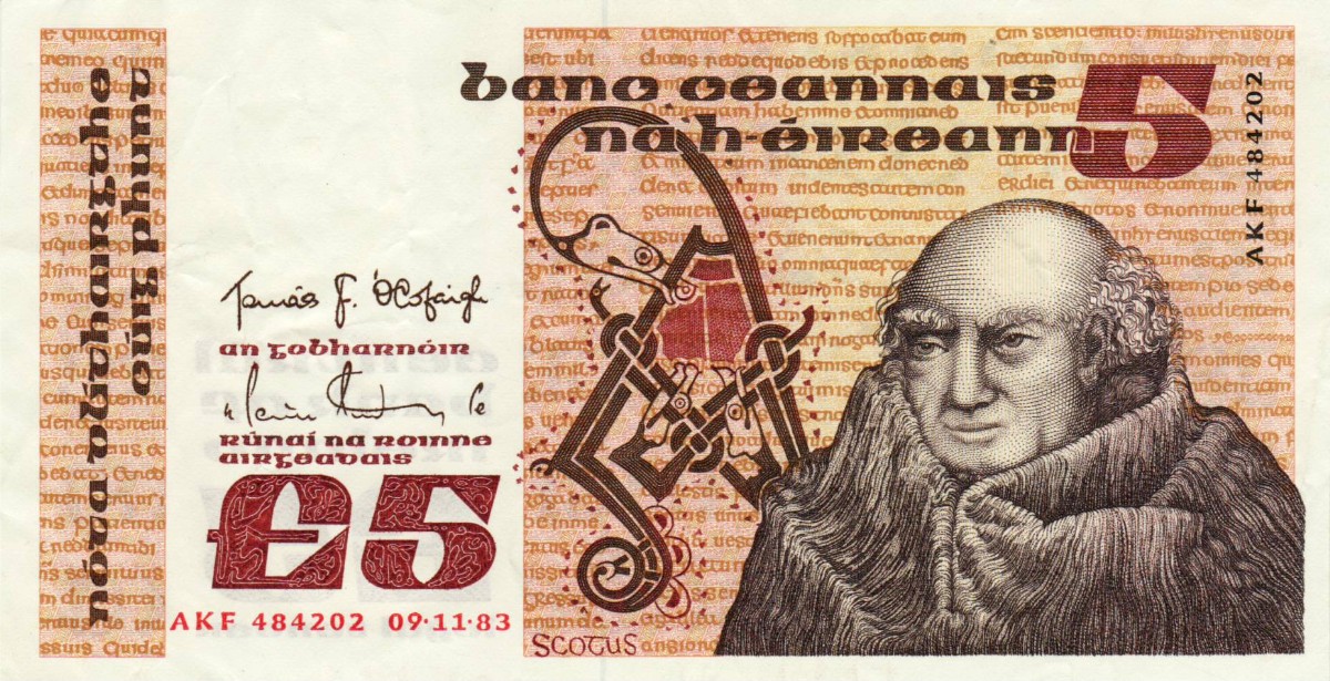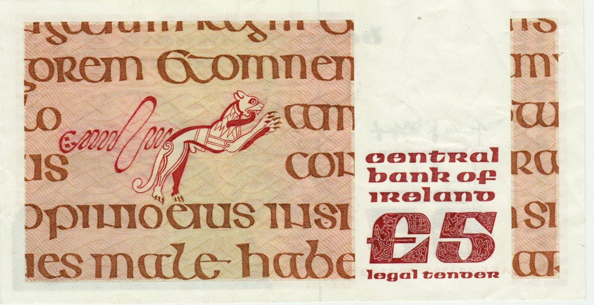 RS: central / bank of / ireland / £ 5 / legal tender, Seite aus dem book of kells