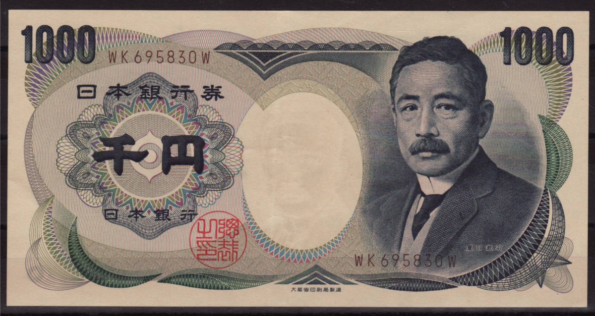 RS: NIPPON GINKO 1000 YEN, links und rechts Kranisch, rotes Siegel