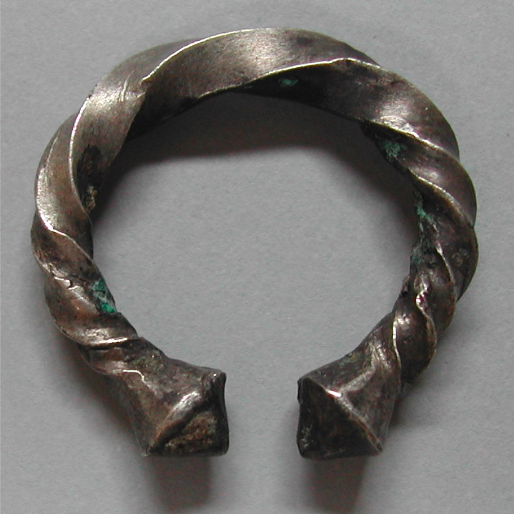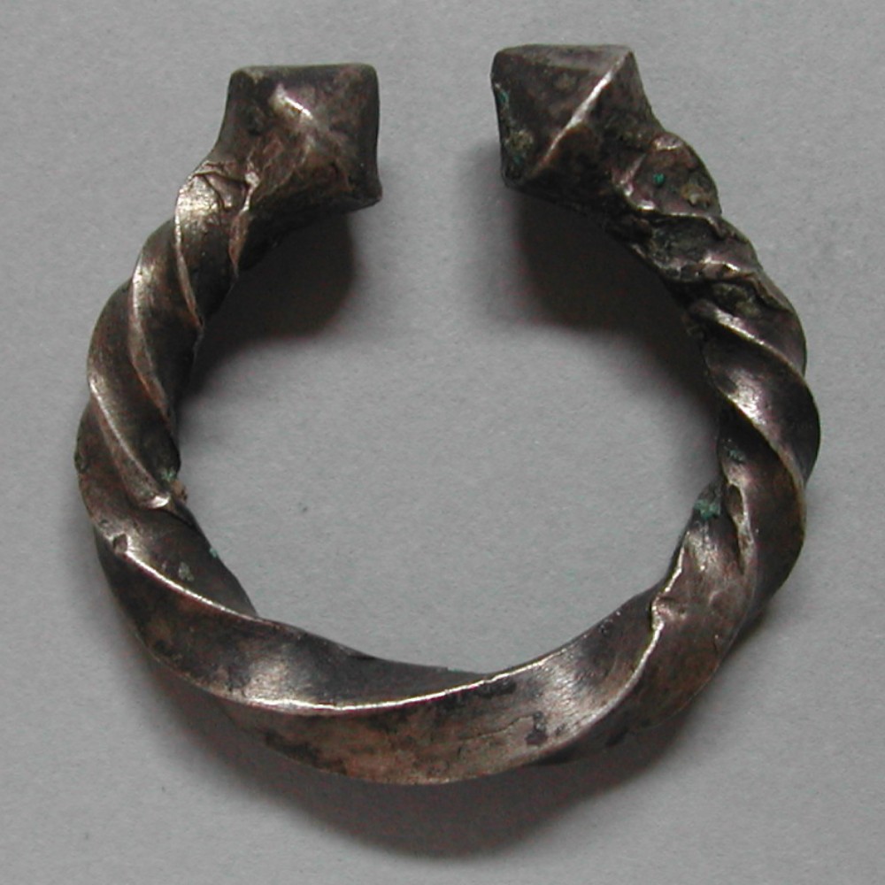 Vierkant Silberdraht ca 3mm dick, gedreht und gebogen mit kegelförmigen Enden