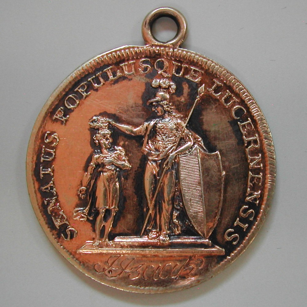 AS: SENATUS POPULUSQUELUCERNENSIS, Minerva mit Stadtschild nach links einen Knaben bekränzend, in Ex: JJsack (?) ligiert