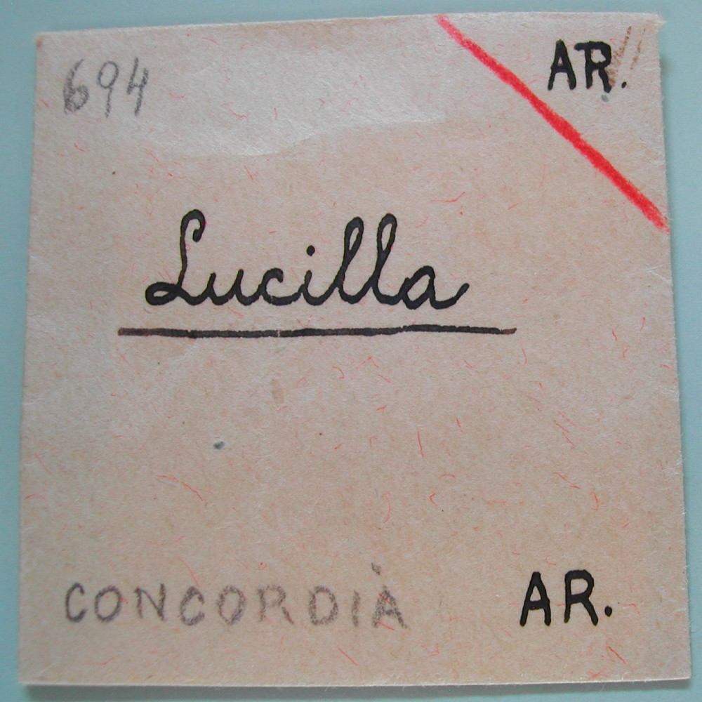 AS: LVCILLA P AVG ANTONINI AVG P, zT Buchstaben verwildert, Kopf mit strenger Frisur und Haarknoten nach rechts