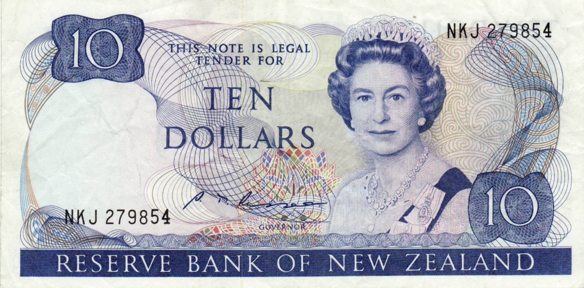 AS: RESERVE BANK OF NEW ZEALAND, TEN DOLLARS, Porträt der Queen Elizabeth II., NKJ 279854