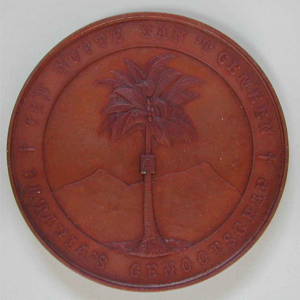AS: TEN NUTTE VAN ‘ T GEMEEN – BATAVIA’S GENOOTSCHAFP, Palme mit hohem Relief im Kreis