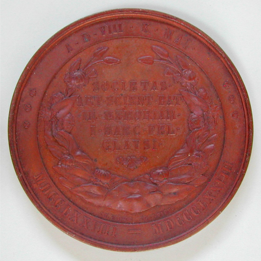 RS: A • D • VIII • K • MAI • ✠✠✠ MDCCLXXVIII – MDCCCLXXVIII, im Blumenkranz: SOCIETAS • / ART • SCIENT • BAT • / I • SAEC • FEL • CLAVSI •, sig: CH.WIENER. BRUXELLES