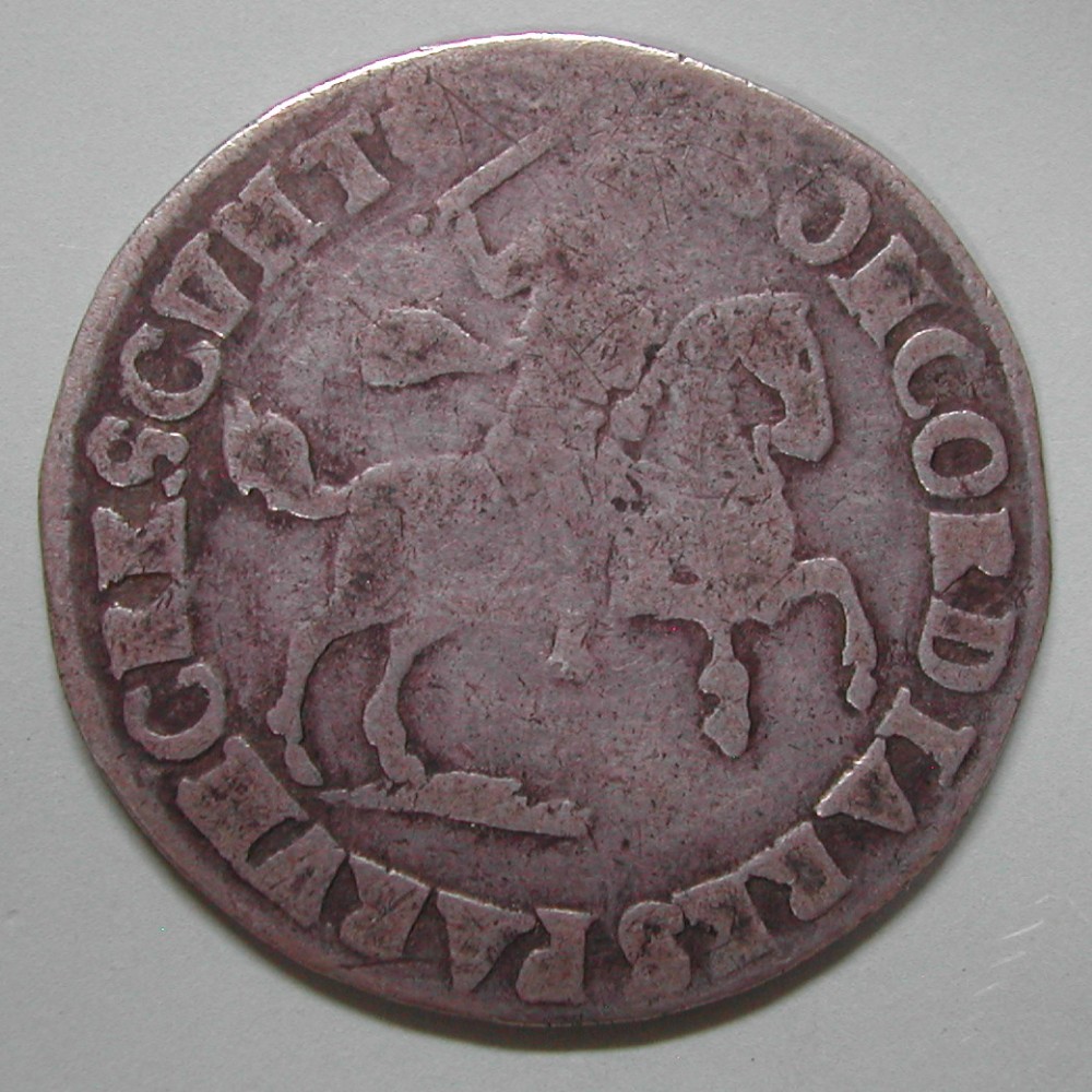 RS: SOM CORDIA RES PARVM CRESCVNT, Reitermit erhobenem Schwert nach rechts reitend