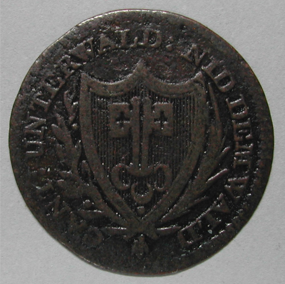 AS: CANT : UNTERWALD : NID DEM WALD, spitzes Wappen zwischen Lorbeer-und Palmzweigen