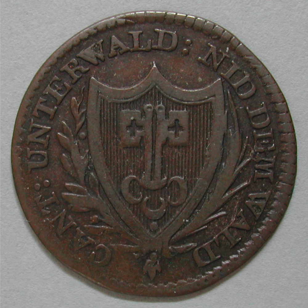 AS: CANT:NIDWALD:NID DEM WALD, spitzes Wappen zwischen Lorbeer-und Palmzweigen