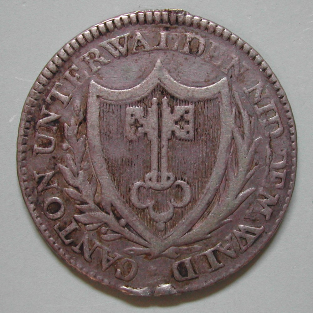 AS: CANTON UNTERWALDENNID DEM WALD •, spitzes Wappen zwischen Lorbeer-und Palmzweigen