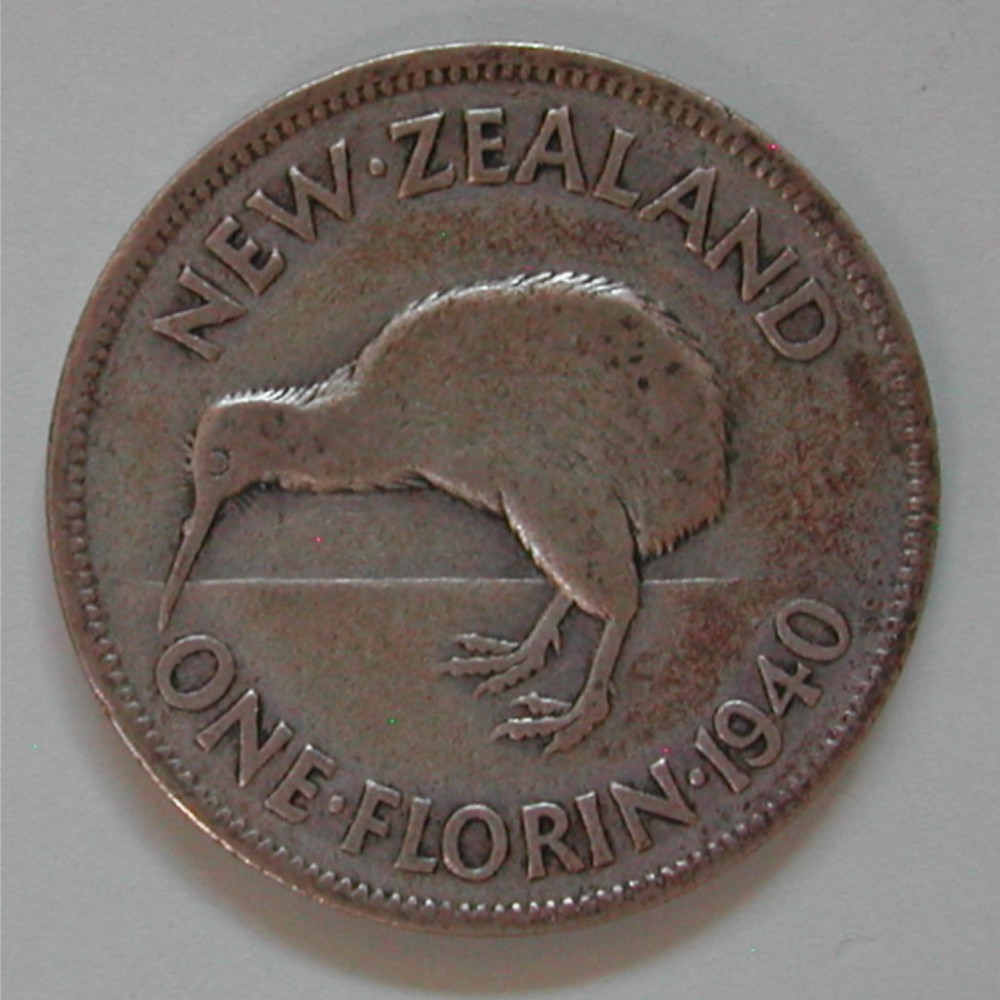 RS: NEW ZEALAND – ONE•FLORIN•1940, Kiwi nach links, sig: KC