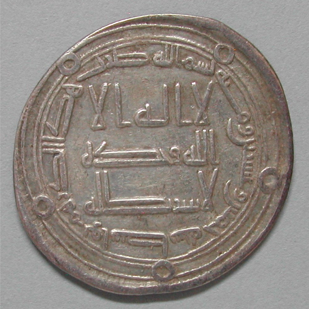 AS: Umschrift: Im Namen Allahs, dieser Dirhem wurde geschlagen in Al-Wasit im Jahr 111, im Feld: Es gibt nur einen Gott, er hat keine Partner