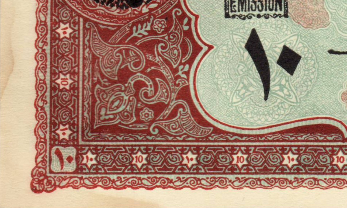 AS: 2-sprachig für Nummer und Wertangabe, sonst arabisch, A • 021193, 10 LIVRES TURQUES