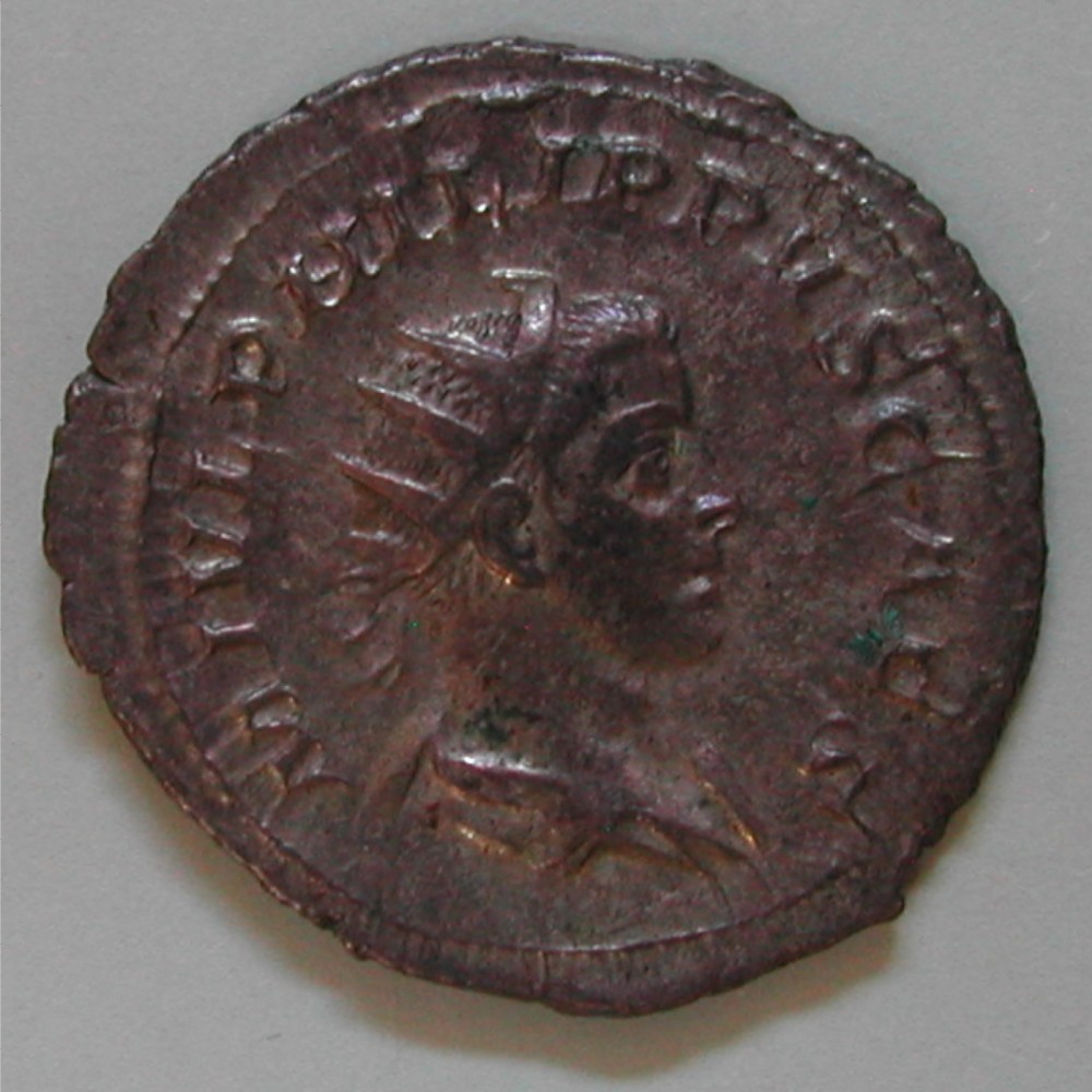 AS: M IVL PHILIPPVS CAES, Kopf mit Strahlenkrone nach rechts